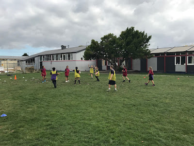 During Kaupapa, Mr Boyd and Miss Crouchley run some team games. The aim of these is to build teamwork among the students, and to get them outside for some fitness. Here is Kahurangi enjoying a team game of Cone Ball.